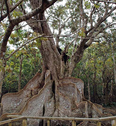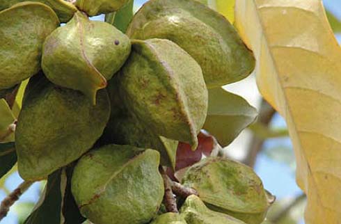 A fa (növény) jellemzői Az örökzöld szabálytalan növésű fa, rövid törzsű, átmérője mintegy 40 cm. Ritkán éri el a 10 m magasságot, vékony, magas, csavarodó gyökérfői vannak, a koronája sűrű, alulról fakó ezüstösnek látszik.