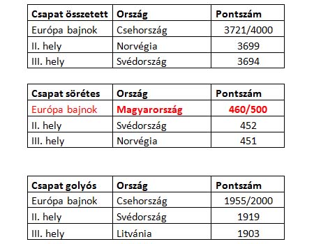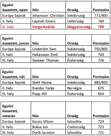 Idén végre összetettben is örülhettünk magyar sikernek, Varga András a Gyulaj Zrt. munkatársa összetettben a 3. helyet szerezte meg szétlövés után! A magyar csapat nyerte a sörétes részt és Varga András egyéniben is diadalmaskodott!