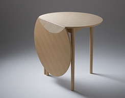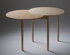 A GEORGEI-III. nevű asztalukon keresztül találtam a lányokra. Finom vonalvezetéssel átfedő geometriai formákkal izgalmas grafikai hatást értek el. A kiindulási pontot az angol prembroke table jelentette. Forma és szerkezet terén ezt a 18. században divatos kialakítást vették alapul. A felületkezelést, furnérozást és a lábszerkezetet már természetesen a jelenkori elvárásokhoz igazították a lányok.