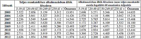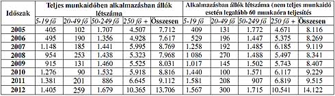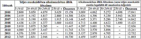 BÚTORIPAR Az alkalmazotti létszámot tekintve a teljes munkaidőben foglalkoztatottak teszik ki a létszám közel 90 százalékát. Az összes foglalkoztatotti létszámban ingadozások a konjunktúra függvényében tapasztalhatók. A 2009-ben és 2010-ben bekövetkezett létszámcsökkentés megállt, 2011-ben a bútoripar egészében 3,8%-kal emelkedett az alkalmazásban állók, és 5,8%-kal a teljes munkaidőben foglalkoztatottak létszáma. 2012-ben ismét létszámcsökkenés következett be az ágazat egészében (-3,3, ill. -4,7%). A csökkenés az egyéb bútor gyártása (-4, ill. -7,2%), illetve az ágybetét gyártása (10,2, ill. 10,9%) alágakban bekövetkezett visszaesésre vezethető vissza.