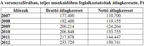 ERDŐGAZDÁLKODÁS Az erdőgazdálkodással foglalkozó vállalkozások kereseti adatai szerint sem a bruttó, sem a nettó keresetek nem érik el a versenyszféra átlagát, nemzetgazdasági szinten a legalacsonyabbak közé tartozik. 2011-ben a bruttó kereset 4,5%-kal, a nettó keresetek 3,4%-kal emelkedtek. 2012-ben a bruttó átlagkereset 12,4%-kal, a nettó átlagkereset 17,1%-kal csökkent. A bruttó keresetek az erdészeti szolgáltatás alágat kivéve csökkentek 2011 év átlagához képest. Ugyanakkor a nettó keresetek valamennyi alágban visszaestek az új adózási rend következtében, de közrejátszott a közfoglalkoztatás keretében alkalmazottak alacsonyabb bérszintje is.