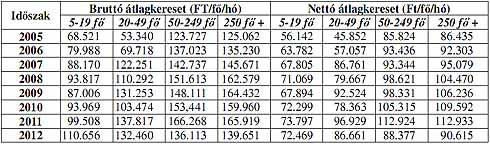 FAFELDOLGOZÓ IPAR A rendelkezésre álló adatok alapján 2009-től a fafeldolgozó ipar vállalkozásaiban mind a bruttó, mind a nettó keresetek jelentősen elmaradnak a nemzetgazdasági átlagtól. 2011-ben a bruttó keresetek 4,6%-kal, a nettó átlagkeresetek 4,4%-kal csökkentek az egy évvel korábbihoz képest. 2012-ben az ágazatban a bruttó átlagkereset 7,3%-os növekedése mellet a nettó átlagkeresetek 0,7%-kal emelkedtek. Figyelembe véve az éves 5,7%-os inflációt, az ágazatban a reálbérek 5%-kal visszaestek. Az alágazatok közül egyben sem volt olyan mértékű béremelés, mely a reálbérek emelkedését eredményezte volna. Kiemelkedően rossz a bérhelyzet a falemezgyártásban, ahol a bruttó átlagkereset 3,2%-kal, a nettó átlagkereset 6,3%-kal csökkent.