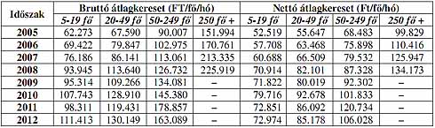 ÁTLAGKERESETEK ALAKULÁSA A FA- ÉS BÚTORIPARBAN LÉTSZÁM-KATEGÓRIÁNKÉNT