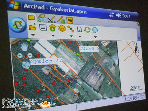 A vezetési ponton a gyakorlat irányítói a tájékozódáshoz nyomtatott térképet és terepi GPS berendezést használó csoportok mozgását szintén a térinformatika lehetőségeit kihasználva digitális térképen követték, akiknek rádión adtak további utasításokat.