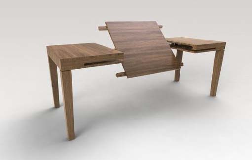 Lift mechanika és tömörfa egysége Juhos Lehel lift mechanikával nagyobbítható étkezőasztalával nyert, az asztal közepén kiemelkedő plusz lapja praktikus megoldás és ötletes szerkezet egyben. A tömörfa asztallaphoz színben variálható, hajlított acéllemezből készülnek a lábak. A fém mechanikát tömörfa kávaelem rejti maga mögé, így a forma egységes és letisztult marad.