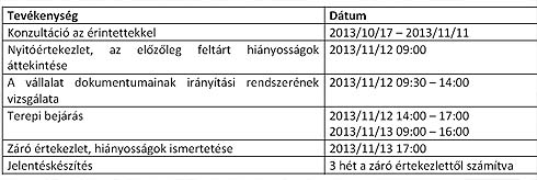 A kiértékelési folyamat tervezett menetrendje az alábbi: