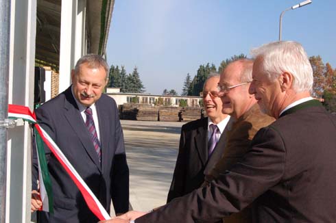 A Magyar Fejlesztési Bank Zrt. Agrár és Turisztikai Befektetési Főigazgatóság ügyvezető igazgatója, Dr. Jung László kiemelte, hogy a bank, mint tulajdonosi joggyakorló alapvető feladatának tekinti, hogy mind a 22 erdőgazdaságában olyan fejlesztéseket hajtson végre, melyek stabilizálják ezeket a társaságokat. Megjegyezte, hogy az erdőgazdálkodás rendszerében a végpont, a korona a fafeldolgozás. Az erdész munkája akkor teljesedik be mikor a faanyag végső felhasználásra kerül, mint bútor, vagy pl. építőanyag. Akkor, amikor mindez egy kézben van és annyira koncepciózusan épül fel egy rendszer, mint a SEFAG-nál, ezek példaértékű és iránymutató alapszemléletek. Gratulált ahhoz, hogy az üzem minden egyes szegletében innovatív technológiai megoldással találkozhat az idelátogató, a végtermék tekintetében pedig láthatóan átgondolt fejlesztésekről van szó. A Csurgói Faipari Gyárról röviden: Szeptember 1-én múlt egy éve, hogy az addig önálló jogi személyként működő Csurgói Faipari Kft. általános jogutódlással visszaolvadt a SEFAG Zrt-be. Az üzem az elmúlt időszakban évente 20-25.000 m3 – döntően a SEFAG által kezelt somogyi erdőkből származó – alapanyagot dolgozott fel félkész, ill. késztermékké. Az integrációnak köszönhetően az alapanyag ellátás jobb logisztikával és kedvező áron történik a jelenben. Mint ismeret a gazdasági válság a Gyár fő piacait jelentő mediterrán országokat érintette legsúlyosabban. A negatív tendenciák - sajnos ebben a térségben - napjainkban sem javulnak. Az elmúlt évtized fejlesztései a félkész (fedőréteg lamella) és késztermékek (felületkezelt kétrétegű parketta) gyártástechnológiájának kiépítését, ill. az ehhez kapcsolódó szárítókapacitás bővítését, a fűtési rendszer korszerűsítését szolgálták. Ennek keretében 2012-ben hossz- és szélességi optimalizáló sort telepítettünk a fűrészipari továbbfeldolgozó csarnokunkba, valamint vásároltunk egy vízszintes szalagfűrészt fűrészelt fedőréteg lamella termeléshez. Fűrészüzemi anyagmozgatásunk korszerűsítésére két elektromos homlokvillás targoncát szereztünk be. Jelen évben pedig növeltük félkész termékeink minőség megóvó tárolási lehetőségét egy 770 m2-es fedett tárolószín felépítésével. A tárolószín mintegy 30 millió Ft-os költségvetéssel, saját forrásból valósult meg. Természetesen igyekszünk kihasználni meglévő fedőréteg lamella gyártó kapacitásunkat is, ennek érdekében a meghatározó európai parkettagyártók, ill. más "lamella" alkatrész felhasználók esetében beszállítói pozíciónk erősítése a cél. Ezen a területen is építhetünk a biztos alapanyagbázisra, valamint a meglévő technológiai bázisra és gyártási tapasztalatra. Reményeink szerint a kiváló minőségű somogyi tölgy alapanyag feldolgozása több hozzáadott értéket biztosít az anyavállalatnak és biztos munkahelyeket az itt dolgozóknak. Forrás: SEFAG Zrt. |