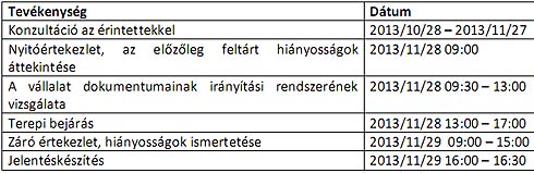 A kiértékelési folyamat tervezett menetrendje az alábbi: