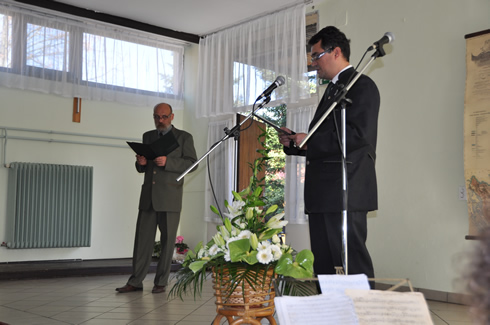 Az ünnepség 10.30-kor kezdődött. A Himnusz után Szilágy Domonkos Zene című versét Kis Flórián 9. osztályos tanuló szavalta el, majd az igazgatónő, Andrésiné dr. Ambrus Ildikó köszöntötte a vendégeket.