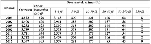 Üzemi eredmény nagyságrendje Az összesített számadatok szerint 2007-ben a legnagyobb 100 cég együttesen 4.708 millió forintnyi üzemi eredményt ért el; 2008-ban 4.988 millió forintot, ugyanez a szám 2009-ben 4.246 millió forint, 2010-ben 4.223 millió forint, 2011-ben 4.254 millió forint, míg 2012-ben 2.415 millió forint összeget tett ki. Ez az üzemi eredmény 43%-os csökkenését jelenti az előző évhez képest.