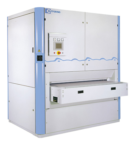Henger és csiszolópapucs egy aggregátban A Bütfering SWT 315x kontaktcsiszolója az úgynevezett X-aggregáttal ugyanazt tudja, mint a hosszabb, több aggregáttal kombinált berendezések. Az innováció lényege a lamellaszalagban rejlik, amely egyszerűen fel-, illetve leszerelhető. A lamellaszalag nélkül az aggregátot kissé előre döntve kalibráló csiszolás végezhető az első hengerrel. A lamellaszalagot alkalmazva, a két henger között elhelyezett szegmentált papuccsal végezhető, a csiszolás. Ezáltal a géppel számos művelet elvégezhető, a durva kalibrálástól a furnérozott vagy lakkozott felületek csiszolásáig. A fejlesztésnek kiemelt jelentősége van a csiszolatnyomoktól mentes felületek kialakításában.