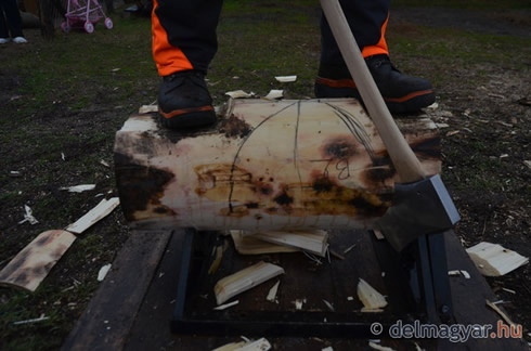 Bozsó Zoltán azt mondja, a versenyen szinte mindig maga alatt vágja a fát. - Az egyik feladatban egy 30 centiméteres rönkön állva hasítjuk félbe a fát. Mivel a penge rendkívül éles, favágás közben speciális munkavédelmi bakancsot és láncharisnyát is viselünk. Ugyanis ez a fejsze nemcsak elvágja a lábat, hanem egyetlen ütésből leviszi - mesélte.