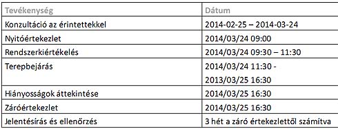 A kiértékelési folyamat tervezett menetrendje az alábbi: