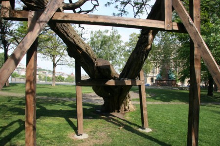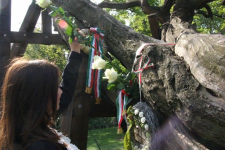 Az emlékezők először a Széchenyi téren "álló" 222 éves öreg akácot látogatták meg. A FŐKERT szakemberei által alaposan megtámogatott famatuzsálem mindannyiunk örömére, dacolva a belváros meglehetősen szennyezett levegőjével, a közelmúltban végrehajtott nagyarányú építkezéssel, 2014-ben is kihajtott.