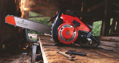 1959: Az első láncfűrész Amikor csökkent a kerékpárok, mopedek és motorkerékpárok iránti kereslet, fokozatosan fontossá vált a fakitermelés Svédországban. A Husqvarna felhasználva a motorok gyártásában szerzett szakértelmét, amelyet motorkerékpárok gyártásakor szerzett, új termékterületen tudta azt hasznosítani. A Husqvarna bemutatta az első láncfűrészét, a Husqvarna 90-t. A láncfűrész megjelenésén legendás svéd tervező, Sixten Sason dolgozott, és motorkerékpár kipufogó-technológiát használt, így a láncfűrész sokkal halkabb volt, mint vetélytársai. A láncfűrészt később továbbfejlesztették vágószerszámnak az építőipar számára.