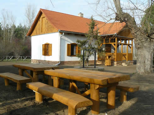 Kialakításra került egy esőbeálló és tűzrakó hely ("pajta"), amely a házzal azonos külső méretű, 3 oldalt nyitott, negyedik oldalán szélfogóval ellátott fa építmény. cseréptetővel, eső elleni védelemként és biztonságos tűzrakó helyként is szolgál.