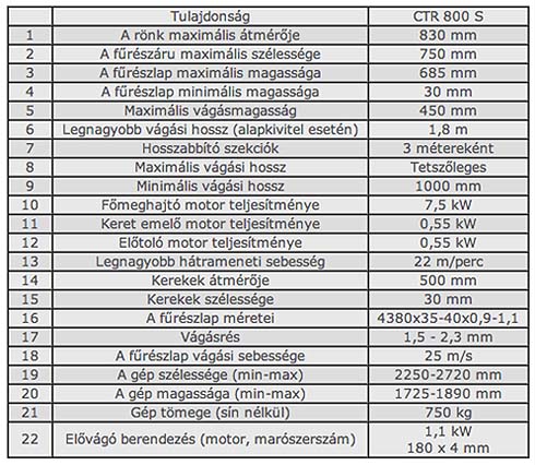 Ez a vízszintes szalagfűrész maximum 83 cm átmérőjű rönk feldolgozását teszi lehetővé. Széles és különlegesen masszív felépítésű fűrészkerete biztosítja a fűrészlap csendes és pontos megvezetését, nagyobb előtolási sebesség mellett is. A CTR 800-as S típusnál a központi vezérlés külön konzolon helyezkedik e a keretre van rögzítve, A gép alapkivitele 3 db rögzítővel és 2 db derékszögű támasszal van felszerelve. A fűrészkeret visszajáratásakor ez a típus már fel van szerelve gyorsvisszajáratóval.