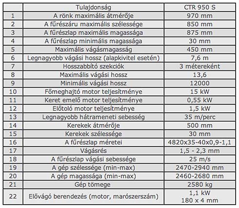 A gép lényegében megegyezik a CTR 1300 fűrészművével és a CTR 950 H hidraulika rendszerével. Az irányító panel külön konzolon áll, az összes elektronikus és hidraulikus vezérlés erről irányítható. A gép alapkivitele 2 db rögzítővel, 5 db derékszögű támasszal, 1 db rönk-fordítóval, 1 db meghajtott görgővel és 1 db nem meghajtott görgővel van felszerelve. Valamennyi hidraulikus meghajtású.