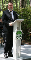 Garancsi István, a Magyar Természetjáró Szövetség (MTSZ) elnöke, miniszterelnöki megbízott beszédében kiemelte: két évvel ezelőtt komoly elképzelések mentén kezdtek dolgozni. Az MTSZ nyolc érintett erdőgazdasággal és 22 civil szervezettel közösen pályázott az Országos Kéktúra (OKT) útvonalak felújítására, amellyel a mai kor színvonalát célozták meg. 2014-15-ben egyre több átadóünnepség lesz, mert az elvégzett munka kezd beérni- tette hozzá. Közölte: az osztrák színvonal elérése a cél, 2-3 év múlva pedig kijelenthető lesz, hogy komolyat lépett az ország ebbe az irányba. Megemlítette, hogy az OKT sok helyen kiemelten hátrányos helyzetű településeken halad keresztül, amelyeknek csak a turizmus jelenthet kitörési lehetőséget. Ezért a helyieket rá kell venni arra, hogy a turistákat vendégül lássák, a turistákat pedig arra, hogy fogyasszanak és ott töltsék pihenőjüket - tette hozzá.