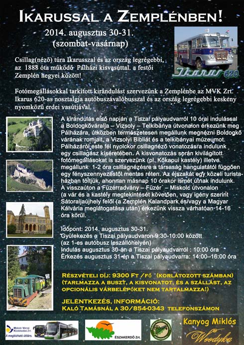 A rendezvény része az MVK Zrt. nosztalgia autóbuszos programjának: az érdeklődők egy Ikarus 620-as busszal utazhatnak Miskolcról a Zemplénbe. Forrás: ÉSZAKERDŐ Zrt.