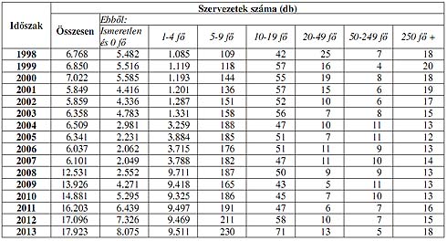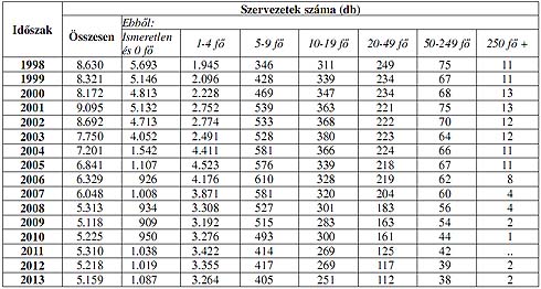 A fafeldolgozó ipar regisztrált szervezeteinek száma 1998-2009 között folyamatosan csökkent. 2010-11-ben mindkét évben növekedést regisztráltak (2010: 2,1%; 2011: 1,6%), 2012-2013-ban azonban ismét kevesebb volt a regisztrált szervezetek száma. 2004-2010 között a létszám kategóriák szerinti összetételében lényeges változás az "ismeretlen és 0 főt foglalkoztató" vállalkozások számának jelentős mértékű csökkenése, ami az "1-4 fő"-t foglalkoztató vállalkozások számának jelentős emelkedésével járt (EVA jótékony hatása!). A 2011. évi kedvezőtlen változások az adózás területén ismét nagymértékű növekedést (9,3%) generáltak az "Ismeretlen és 0 fő" kategóriában. Ugyanakkor az"1-4 fős" kategóriában is emelkedést tapasztalhattunk, bár mértéke jelentősen elmaradt az előbbitől (4,5%). 2012-ben 1,8%-kal csökkent az "ismeretlen és 0 főt foglalkoztató", illetve 2%-kal az "1-4 fő"-t foglalkoztató vállalkozások száma (NAV szerepe az adóbevallást nem benyújtó vállalkozások törlésével). 2013-ban az "ismeretlen és 0 főt foglalkoztató" vállalkozások száma ismét emelkedett (+6,7%), ugyanakkor az "1-4 fő"-t foglalkoztató vállalkozások száma 2,3%kal csökkent. A többi létszám-kategóriában csökkent a regisztrált gazdasági szervezetek száma. A 20-49 főt foglalkoztatók száma 4,3%-kal csökkent, az 50-249 főt foglalkoztatóké kisebb mértékben, 2,6%-kal mérséklődött, a 250 főt és annál többet foglalkoztató vállalkozások száma 2, az egy évvel korábbihoz hasonlóan. A hat alág közül kettőben emelkedett a regisztrált vállalkozások száma (1,3-24,0%), háromban csökkent a regisztrált szervezetek száma (-1,6 - -3,0%). Az összes faipari vállalkozás közel felét az épületasztalos-ipari üzemek, 1/5-1/5-ét pedig a fűrészipari, illetve az egyéb fa, parafa, fonottáru gyártásában érdekelt vállalkozások teszik ki.