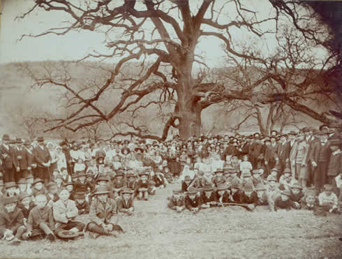 Tolna megyei Közlöny 1912. november 3-i számából: "Évezredes tölgyek Tolnában Eszterházy Miklós herceg Tolnatamási határában fekvő miklósvári vadaskertjében több száz hatalmas tölgyfa állott az erdőben elszórva, melynek korát az erdészek 500-1000 évre becsülték. Amint a vágásra megérett erdőt, az üzemterv szerint évről évre letarolták ezek a gyönyörű példányok is áldozatul estek és mérhetetlen sajnálatára minden természetbarátnak, néhány óra alatt ledőlt egy-egy ezer év alatt fejlődött óriás. Ezt a fát a földművelésügyi miniszter az emlékfák országos törzskönyvébe is felvette és hogy egyedül ne maradjon az uradalom megkegyelmezett a körülötte álló tíz legszebb fának. A többi erdőt továbbra is várta végzete. A vén és odvas fa pusztulása által ezernyi hasznos madárcsalád vált hajléktalanná, ezek számára az Ornitológiai Központ mesterséges fészekodú telepet létesített és a Természeti Értékeket Fenntartó Országos Bizottság útján kérte a herceget, kímélné meg az időközben már ötven holdra leolvadt erdőt, ámde hiába. Az idén azonban a herceg nagybátyja Eszterházy Antal herceg nejével lent járt vadászni és a hercegasszony szíve megesett a halálra ítélt óriásokon. Kieszközölte, hogy az általa megjelölt 45 legszebb tölgyfát meghagyják. Minthogy az ezeréves fák nagy területen állnak elszórva a többi erdő levágása által szépségük még jobban érvényesül." Forrás: GYULAJ Zrt.