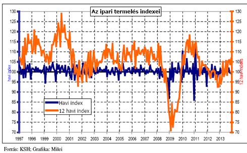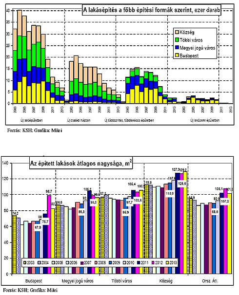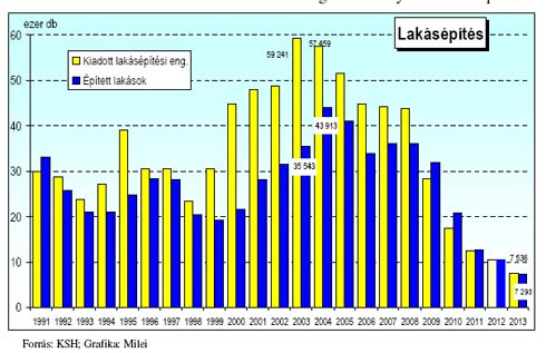 Az EU-28 részben becsült építőipari termelése - munkanappal kiigazított indexe szerint - 2013 IV. negyedévében 0,2%-kal csökkent, az egy évvel korábbihoz képest. Építményfőcsoportok szerint az épületek építése stagnált, az egyéb építmények építése 1,6%-kal esett vissza. 2013. decemberében az építőipar teljesítménye 1,1%-kal nőtt, az épületek építése 0,7%-kal volt magasabb, míg az egyéb építményeké 1,9%-kal haladta meg, a 2012 decemberi mértéket. Az adatot szolgáltató tagállamok közül 2013 negyedik negyedévében az építőipari termelés Szlovéniában (22,3%), Magyarországon (13,4%) és Litvániában (18,4%) emelkedett a legkiugróbb mértékben. A legjelentősebb csökkenés az építőipar teljesítményében Olaszországban (-9,8%), Cipruson (-27,6%), Portugáliában (-13,8%), és Dániában (-7,7%) következett be. 2013-ban a hazai építőipar termelése 9,6%-kal haladta meg az egy évvel korábbit. Múlt év decemberében a termelés 11,4%-kal volt magasabb, mint 2012 decemberében. A növekedés részben a korábbi alacsony bázis, részben a bővülő út- és vasútépítési munkák, illetve ipari épületek építésének eredménye. Az épületek építése főcsoport termelése 10,4%-kal, míg az egyéb építmények építése 8,6%-kal emelkedett 2013-ban 2012 azonos időszakához képest. 2013 decemberében az épületépítés volumene 12,8%-kal, az egyéb építmények építése 9,3%-kal emelkedett 2012 decemberéhez képest. 2013-ban 30,9%-kal csökkent a használatba vett lakások száma az egy évvel korábbihoz képest. A csökkenés - Budapest kivételével - valamennyi településtípust és régiót érintett. 2013-ban a külkereskedelmi forgalom export volumene 4,8, az import 5,0%-kal emelkedett az egy évvel korábbihoz képest. Az euróban számított kivitel volumene 2,2, a behozatalé 1,9%-kal bővült. A külkereskedelmi mérleg 7.008,5 millió euró többletet mutatott, az előző évi 6.654,5 millió euróval szemben. Ez 354 millió euró egyenleg javulást jelent az egy évvel korábbihoz képest.