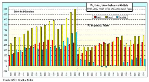 A fa alapanyagok 2013. január-decemberi külkereskedelmi forgalma pozitív egyenleggel zárt, mértéke meghaladja a 20 milliárd forintot, ami 6,4%-kal kevesebb az egy évvel korábbinál. A behozatal forintban 5,5%-kal, kivitelünk pedig 5,8%-kal visszaesett. A fatermékek kivitele a múlt évében 13,2%-kal emelkedett, míg behozatalunk 19,2%-kal nőtt. Az egyenleg közel 2 milliárd forinttal, 9%-kal maradt el az egy évvel korábbitól. 2013-ban a bútor és bútorelem behozatal 11,5%-kal bővült. Az árucsoport kivitele a vizsgált időszakban 8,9%-kal emelkedett az egy évvel korábbihoz képest. Az árucsoport egyenlege több mint 13 milliárd forinttal kedvezőbben alakult, mint az előző évben.