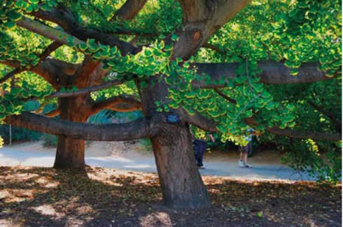 A fa (növény) jellemzői A ginkgo fa se nem tűlevelű, se nem lombos fa, még ha gyakran azt is mondják, hogy a tűi összenőttek és ezért van levélszerű lombozata. A valóságban a fa a nyitva termő növények közé tartozik és a tűlevelűek mellé sorolandó be, bár a lombját periódusosan elhullajtja. A ginkgo fa mintegy 40 m magasságot ér el, ritkább esetben 2,5 m törzsátmérővel, nálunk a parkokban és a kertekben lényegesen kisebbek. Japánban és Kínában vannak ezeréves, 45 m magasságot és 5 m törzsátmérőt elérő fák is. Európában 150 éve telepítik. A fiatal fa karcsú növésű, szűk, piramis formájú koronája van, mely a korral gyakran szétágazik. Dendrológusok megfigyelése szerint a hímnemű fák koronája oszloposabb, a nőneműeké szélesebb. A ginkgo fa kétlaki. A sárga, baracknagyságú gyümölcsöknek éretten ezüstös csillogásuk van (ezért nevezik ezüstbaracknak), 20-30 év után érnek először, és csak nőnemű fákon teremnek. Az idősebb törzseket szürke, mélyen repedezett kéreg borítja. Legismertebb jellemzője a levele, melyek részben kettős levélként alakulnak ki.