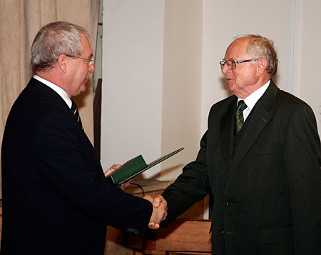 Dr. Verbay Józsefnek, a minisztérium volt Erdészeti Hivatala nyugalmazott szakmai tanácsadójának, a magán erdőgazdálkodás működési feltételeinek kidolgozása, a hazai erdőtelepítési és fásítási programok kidolgozása területén végzett kiemelkedő munkája elismeréseként.