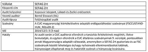A Control Union Certifications (CUC) ezúton közzéteszi, hogy tanúsító auditot folytat a CUC magyarországi kiértékelésekre adaptált erdőgazdálkodási szabványai (a FSCCUSTAND-HUN R01v09-2) alapján. Ez a szabvány erről a linkről megnyitható.
