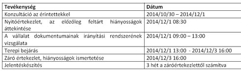 A kiértékelési folyamat tervezett menetrendje az alábbi: