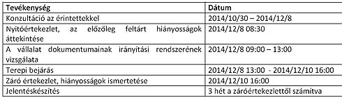 A kiértékelési folyamat tervezett menetrendje az alábbi: