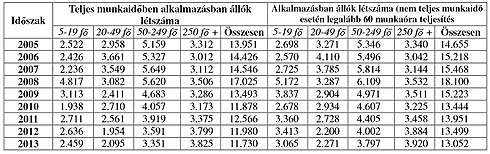 A Top100 lista cégei alkalmazotti létszámának alakulása (zárójelben az országos adatok és a részarány) [szögletes zárójelben az éves létszámváltozás a Top100 cégnél]: 2005: 8.355 fő (14.655; 57%); 2006: 8.683 fő (15.218; 57%) [2006/2005: +3,9%]; 2007: 9.166 fő (15.468; 59%) [2007/2006: +5,5%], 2008: 9.053 fő (18.100; 50%) [2008/2007: -1,2%]. 2009: 9.013 fő (15.223; 59%) [2009/2008: -0,4%]. 2010: 7.865 fő (13.444; 59%) [2010/2009: -12,7%]. 2011: 8.617 fő (13.951; 62%) [2011/2010: +9,6%]. 2012: 8.595 fő (13.499; 64%) [2012/2010: -0,3%]. 2013: 8.832 fő (13.052; 68%) [2013/2012: +2,75%].