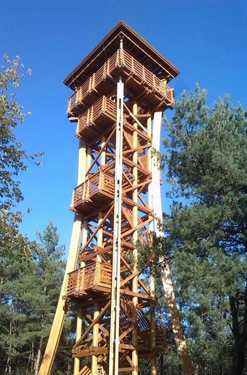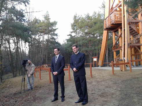 A másik jelentős beruházás az új Hármashegyi Kilátó megépítése volt. A Hármashegyi Pihenőcentrum az egyik kiemelt pihenőövezete az Erdőspusztának. A nevét a három földhalom kiemelkedéséről kapta, melynek legmagasabb pontja 151 méter. Itt található a Zsuzsi Erdei Vasút megújult végállomása, illetve a Debreceni Önkormányzat tulajdonában levő Hármashegyi Erdei Iskola, amely szeptember óta a társaság üzemeltetésében működik. A korábbi hármashegyi kilátó a 80-as évek elején épült, az akkori műszaki színvonalnak megfelelően. A 14 méter magas létesítményt a környező fák túlnőtték, ezért átépítése már időszerű volt. Az új 25 méter magas kilátó megépítése 46 millió forintba került. A pénz felét az Európai Mezőgazdasági Vidékfejlesztési alap erdei közjóléti létesítmények megvalósítására szolgáló pályázatán nyerte el a NYÍRERDŐ. A fő tartószerkezet elemei a négy hajlított, valamint a kilenc nyolcszögletű egyenes tartóoszlop, amely szíjácsmentes rétegelt-ragasztott faanyagból készült. A csaknem 19 méter magasban lévő ácsszerkezetű, kettős héjalású sátortetővel fedett kilátószintre hét lépcsőkar vezet fel.
