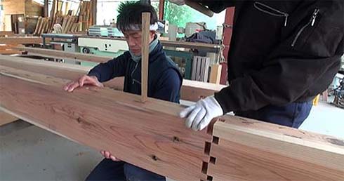 Az első videón egy egyszerűbb csapolási technika látható, amivel két gerendát toldanak össze.