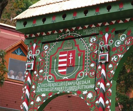 A Trianont követő időszakban a megmaradt országrészben mindennek megnőtt a jelentősége, ami a magyarságszellemet hordozta. Feltehetően ilyen módon került felállításra 1929. június 26-án Visegrádon, az akkori Horthy Miklós Szanatórium díszbejárataként a harmadik Dávid Mózes által faragott, úgynevezett oszlopos székelykapu. A valaha nagyon látványos, hangsúlyozottan a magyar trikolor színeiben megfestett kapu az elmúlt 85 évben igen kevés karbantartást kapott. Az idők során a terület gazdaváltásai és az útépítés miatt áthelyezett kapu nagyon rossz műszaki állapotba került. Igaz, hogy a '70-es években történt áthelyezés után átfestették (és ezzel bizonyos mértékig óvták az alatta lévő eredeti festést), de a színek láttán az volt az érzésem, hogy azt a medencekék és okkersárga festéket használták fel, amit éppen akkor a raktárban találtak. Az idők során a zsindelyezés és a galambdúc borovifenyő anyaga nagyrészt elkorhadt. Az így szabaddá vált tölgy szemöldökgerenda felső része ugyanilyen sorsra jutott. Amikor 2013 nyarán barátaim, a Budapest-Duna Rotary Club vezetői felkértek, hogy próbáljuk meg helyreállítani ezt a valaha szebb napokat látott kaput, jól látszott, hogy nagy munka vár ránk. Elvállaltam a felkérést, mert a kapu rendbehozatala komoly szakmai kihívást jelentett, ugyanakkor remek lehetőséget arra, hogy a korábbi évtizedek gyakorlatának megfelelően, arra érdemes és érdeklődő diákjaim segítségével egész életre szóló élményt szerezzünk magunknak, és ismét megmentsünk egy magyar kulturális emléket.