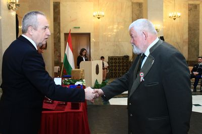 FARAGÓ SÁNDOR okleveles erdőmérnök, egyetemi tanár, a Magyar Tudományos Akadémia doktora, a Nyugat-magyarországi Egyetem rektora részére a vadgazdálkodás és a természetvédelem területén elért kiemelkedő, nemzetközileg is elismert egyetemi oktatói munkája, kutatási eredményei és publikációs tevékenysége elismeréseként. (Fotó: MTI)