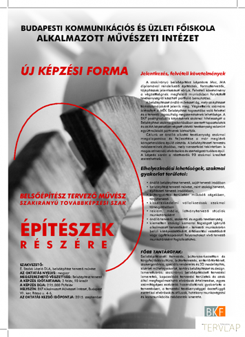 Szakvezető: E. Szabó László DLA, belsőépítész tervező művész Az oktatás nyelve: magyar Megszerezhető végzettség: Belsőépítész tervező A képzés időtartama: 3 félév, 90 kredit A képzés díja: 295.000 Ft/félév Helyszín: BKF Alkalmazott Művészeti Intézet, Budapest VII., Rózsa u. 4-6. Az oktatás kezdetének időpontja: 2015. szeptember