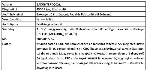 BAKONYERDŐ Zrt. FSC tanusító auditja
