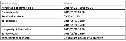 A kiértékelési folyamat tervezett menetrendje az alábbi: