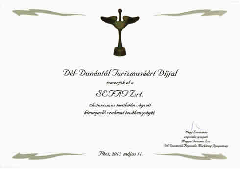Turisztikai kitüntetést kapott a SEFAG Zrt.