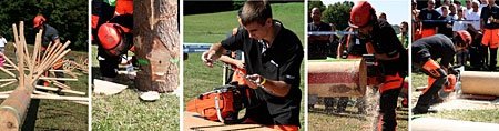 Eztán bemutatták a versenyzőknek a feladatot, a versenyszámok szabályos teljesítésének módját: gallyazás, döntés, láncszerelés, kombinált darabolás és lánckímélő darabolás.