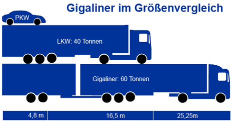 A közlekedési minisztérium szerdai közleménye szerint a 16 tartomány közül már 12-ben közlekedhetnek az óriáskamionok a kijelölt útszakaszokon, többnyire autópályákon. A tárca tervei szerint a vizsgálatot 2016-ig folytatják, majd a teljes úthálózaton engedélyezik a Gigalinerek használatát, amelyek akár 25,5 méter hosszúak és 44 tonnásak lehetnek. Az új típus bevezetésének pártolói szerint a hagyományos kamionoknál másfélszer több rakomány szállítására alkalmas Gigalinerek révén csökkennek a fuvarozási költségek, kevesebb teherautóra, kamionra lesz szükség, és mérséklődik a károsanyag-kibocsátás. Az ellenzők viszont azt állítják, hogy a költségek csökkenése a vasúti fuvarozás rovására növelné a közúti fuvarozás versenyképességét, ezért egyre nagyobb lenne a forgalom az utakon, növekedne a szén-dioxid-kibocsátás, és visszaszorulna a környezetet kevésbé károsító vasúti szállítmányozás. Ráadásul a Gigalinerek bevezetése az adófizetőket is megterhelné, mert infrastrukturális fejlesztéseket tenne szükségessé, egyebek között meg kellene erősíteni miattuk az autópályahidakat, és át kell alakítani a pihenőhelyeket, parkolókat.