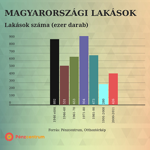 Nem titok, a magyarországi lakásállomány elöregedő félben van, egy átlag lakás közel 50 éve épült és az sem bíztató jel, hogy az elmúlt években a kiadott új építési engedélyek száma történelmi mélyponton volt. Az új lakások építésének csökkenő trendje 2014-ben megállni látszott és bíztató, hogy az engedélyek száma 2015 első negyedévében 44 százalékkal nőni tudott az előző azonos időszakához képest, de az alacsony bázis miatt ez még nem ok a túlzott optimizmusra. Ha az országos állapotokat nézzük, a 2011-es népszámlálás adatai szerint a legtöbb ingatlan 1946 előtt valamint az 1970-es - 80-as évek alatt épült az országban. A több, mint 65 éves ingatlanok, melyek jellemzően a második világháború végéig épültek meg - jellemzően egyébként a világháborút megelőzően - a lakóingatlan állomány 20 százalékát teszik ki. Az 1970-es - 1980-as évekre tehető lakásépítési boom, ekkor az általános jólét növelése érdekében támogatott lakás és lakótelep építések kezdődtek. A rendszerváltást követő években az újonnan épült ingatlanok száma drasztikusan, a harmadára visszaesett, fordulatot csak a 2000-es évek lakástámogatási rendszere, valamint a devizahitelezés elterjedése és felfutása hozott, annak ismert negatív következményeivel. A válságot követően tovább zsugorodott az új építések száma.