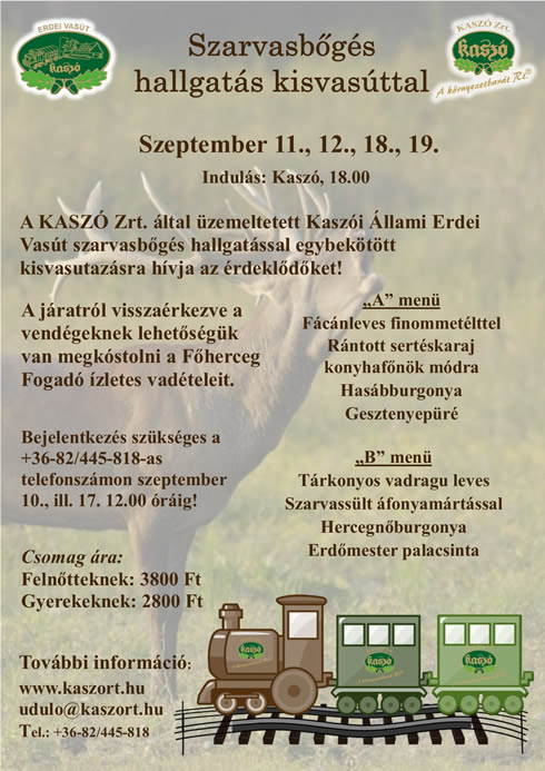 További információ: www.kaszort.hu - udulo@kaszort.hu - Tel.: +36-82/445-818