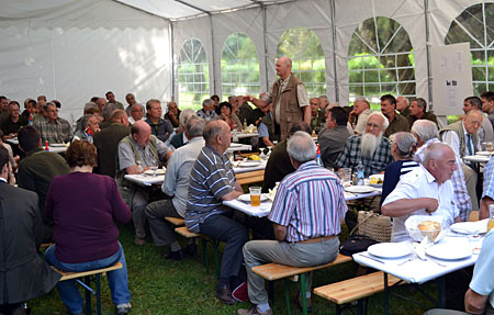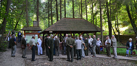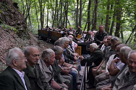 A következő napirendi pont a felejthetetlen élményű kisvasutazás volt. A fenti végállomáson, a Gloriett-tisztáson Schmotzer András bűvölt el bennünket tudásával. Szavaiban érződött, amit ő maga is megemlített, hogy miután Szilvásváradon nevelkedett, lokálpatrióta lett a helyszínhez és a helyszín szelleméhez, történelméhez. Számos érdekes információval lettünk gazdagabbak.