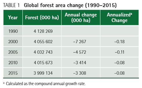 Az 1990-es bázisévhez képest, amikor a szárazföld 31,6 %-át, avagy 4 128 millió hektárnyi területet borított erdőség, napjainkra 1 %-os csökkenést (3 999 millió hektárra) regisztráltak a FAO szakértői.