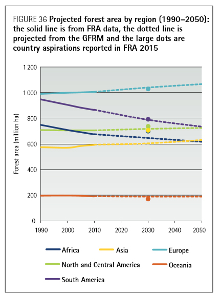 Az erdőirtás legnagyobb mértékben a trópusi területeket, leginkább Latin-Amerikát és Afrikát érintette. Itt 2,8 %-kal zsugorodtak az erdőségek 2010-15 között. A trópusi és szubtrópusi régiókban az egy főre jutó erdőterület a népesség-növekedéssel párhuzamosan jelentősen csökkent.