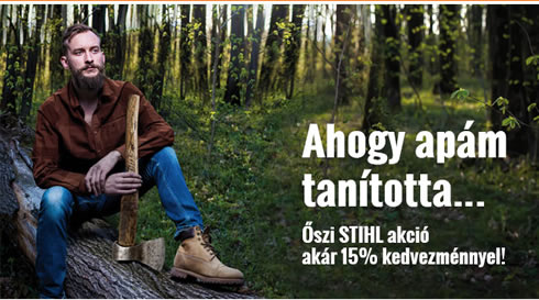 A STIHL gépeket hosszú évtizedekre tervezték, amelyek kiállják az idő próbáját. Csapjon le a lehetőségre! Keresse akciós termékeinket 2015.09.01 és 2015.10.31 között hivatalos szakkereskedéseinkben és tapasztalja meg a STIHL korlátlan szabadságát!